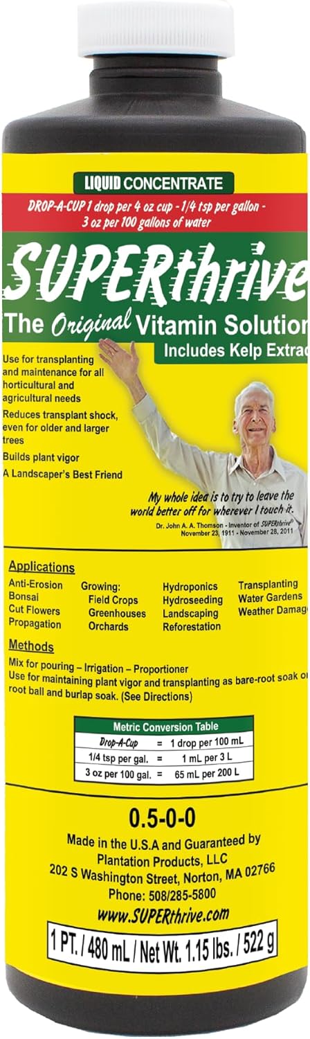 • Superthrive Is a Highly Concentrated Non-toxic Vitamin Solution Invigorating All Variety of Greenery for Home Gardeners and Professionals Alike; It Is Equally Suited for Hydro-seeding, Hydroponics, and Foliar Spraying