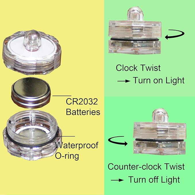 • Easy twist on/off + simple battery change. Battery last 30-70hours