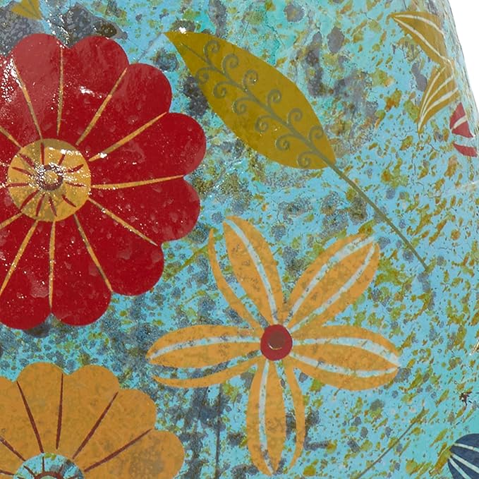 • Style : Standing Blue Metal Rooster with Colorful Flowers
