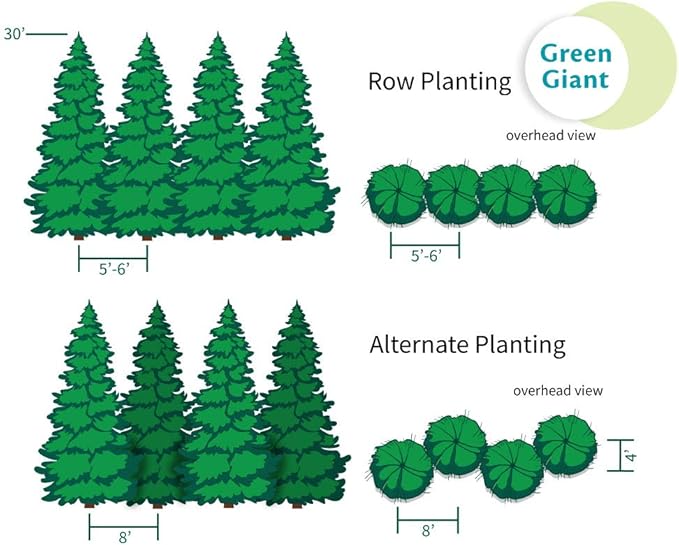 • Need a privacy screen fast? Thuja Green Giants are the answer. These evergreens sprint skyward at an impressive 3-5 feet per year once settled, quickly transforming your space into a lush, private oasis. These giants are a dream for busy gardeners. Plant them in a straight line or a staggered row; either way, they'll provide that perfectly uniform, classic look without any pruning needed.