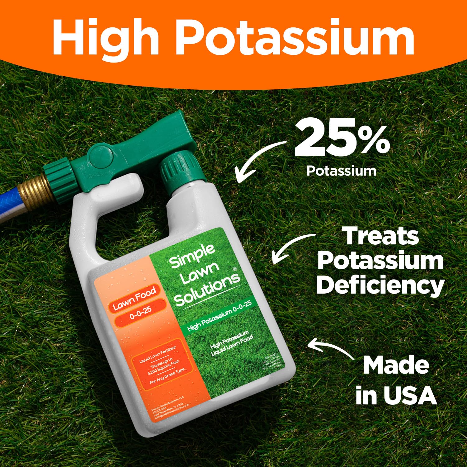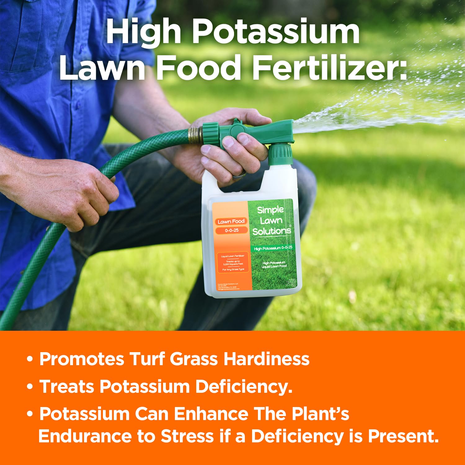 Simple Lawn Solutions - High Potassium Lawn Food Liquid Fertilizer 0-0-25 - Concentrated Spray - Turf Grass Vigor and Plant Hardiness - Summer and Fall - Any Grass Type (32 Ounce)