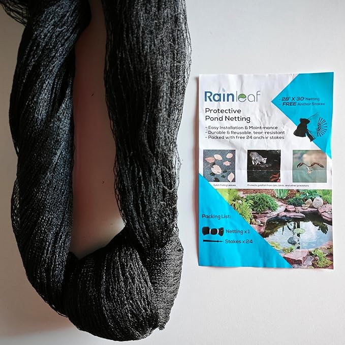 Rainleaf Pond Netting, 14' x 20' Pond Net Cover, Koi Pond Netting for Leaves, Heavy Duty Koi Pond Net Protecting Koi Fish from Herons, Stakes Included, Snare Nets
