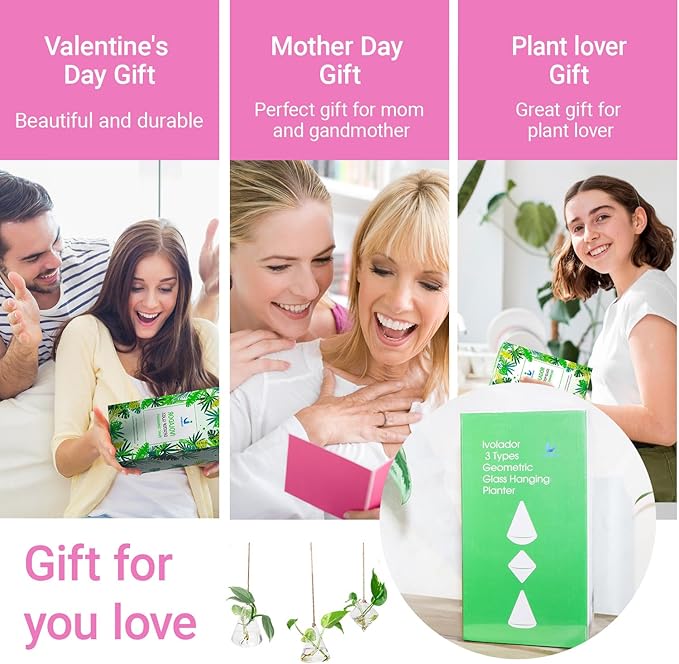 • Indoor Gardening Gifts for women:Unique gifts for Birthday,Thanksgiving,Christmas,Valentine's Day,Women's Day,Anniversary,Mother's Day,Women's Day.This propagation vases for indoor plants is great gift for Office decor,house decor,desk accessories,bookshelf decor,special occasions decoration gifts.Plant lover,your family,mom,wife,husband,girlfriend,any special man will enjoy this Unique Planter.
