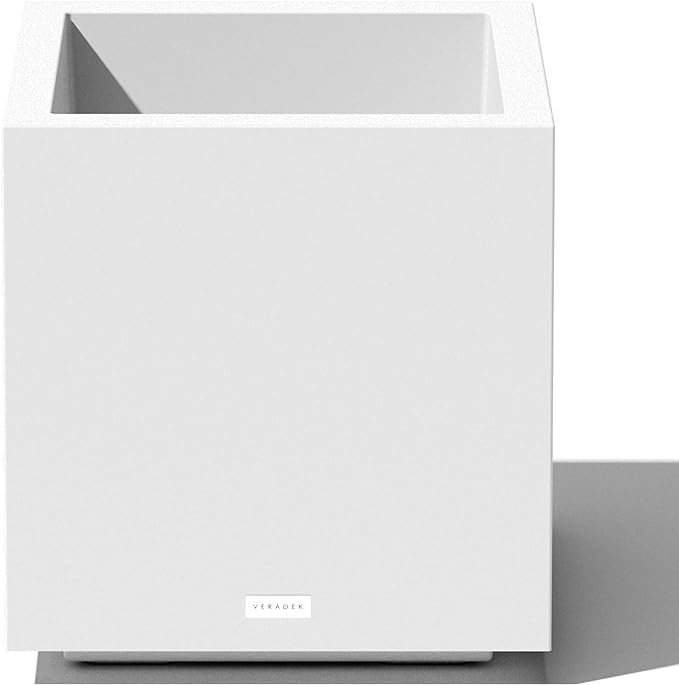 Veradek Block Series Cube Plastic Planter - Large Square Planter for Indoor or Outdoor Patio/Garden | Durable All-Weather Use with Drainage Holes | Modern Décor for Tall Plants, Trees, Flowers