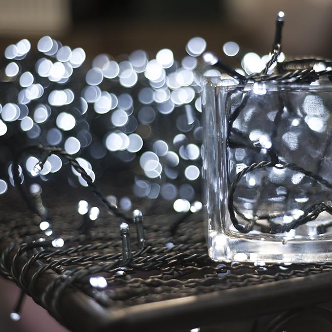 • 【Dark green cable Christmas Tree Light】Perfectly hiding on gardens, plants,and home decoration; 200pcs white LEDs up to 73ft/23m total length with 10ft/3m leading wire, space between each LED: 4 inch/10cm.