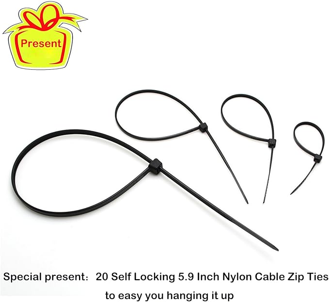 • Special Present for U: For the sake of easy installation, we provide 20 Self Locking 5.9 Inch Nylon Cable Zip Ties for our this 50Ft string lights.