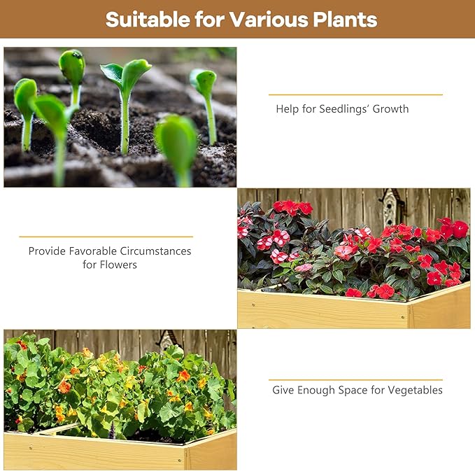 • 【Super Solid Structure】–Our raised bed is wooden structure. More sturdy and durable than plastic ones. And cedar won't easily splinter, warp or crack. With 6 feet, this flower bed can stand well. It will be a great companion to your garden.