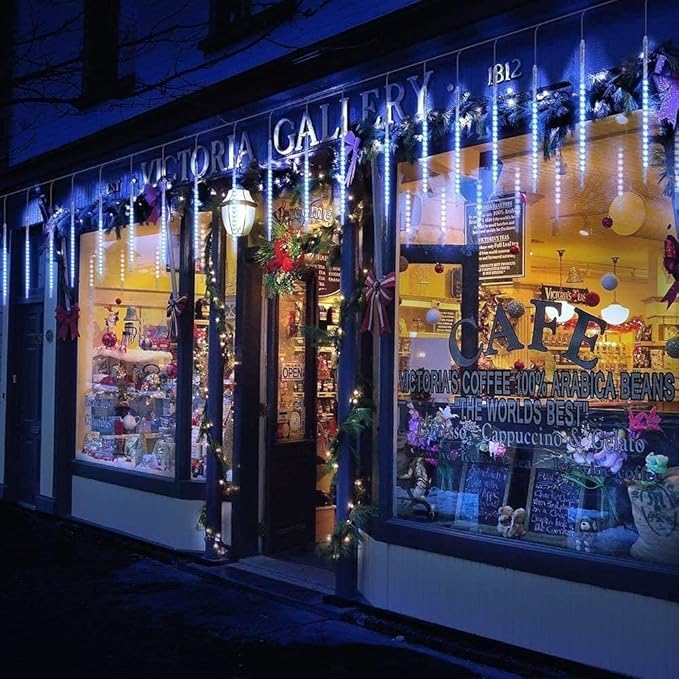 • IDEAL DECORATIVE LIGHTS - Falling raindrop light sare good use to decorate streets, parks,store, it also suitable for home,garden Yard,fence,backyards,path, sidewalks, flower beds, fences, roofs, trees,etc,decor, Christmas, New Year, Wedding, Birthday Party, Valentine's Day,Business Celebration and any celebrating time all over the environment decoration