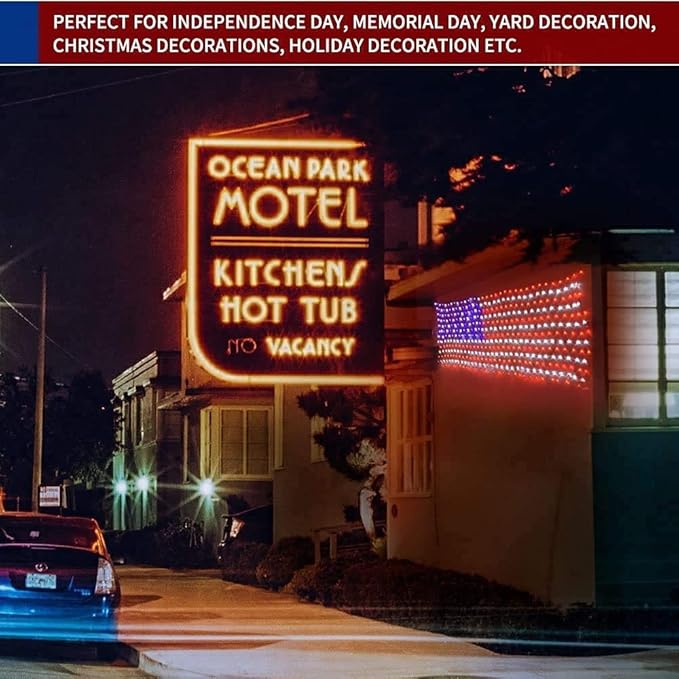 • 【Large Size】: the size of our flag light is 6.54 FT x 3.28 FT, this LED US Flag Net Light Is So Brilliant And Beautiful, Hanging It At Your Home Or Yard, Which Is A Perfect Way To Show Your Patriotism In Memorial Day, Independence Day, Labor Day, Christmas Day, Festival , Holiday , Party, Ceremony.