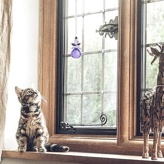 • Use Scenario: The purple crystal angel light catcher pendant is not only a perfect interior decoration, but also a fun toy for children to learn and play. If you have pets, your pets will also use our light catcher pendant as a toy, because the hanging prism can reflect many rainbow spots in the sun. Pets love to play the game of catching rainbows