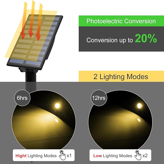 • 【Wide Application】 -- Waterproof rating IP65, don't worry about rain, snow and dust. The solar spotlight perfect for garden, patio, driveway, stairs, pool area, etc..