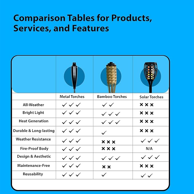 • DURABLE METAL CONSTRUCTION: These torches are made from strong metal with a shiny silver finish, ensuring they are sturdy and can withstand any weather without rusting or bending. Enjoy them for many seasons.