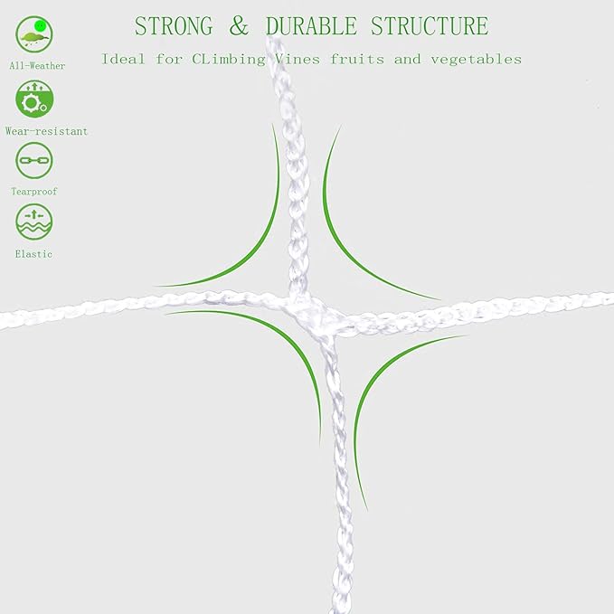 • 2.【USAGE】plant netting,growing trellis,Versatile Trellis,eavy-duty Flexible String Net is ideal for growing vine crops, vegetables, fruits, flowers and hydroponics plant,Suitable for A-frame, vertical and horizontal garden application.