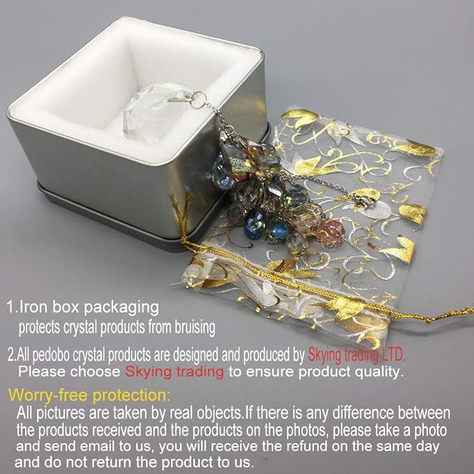 • SPECIFICATION: Colorful Jewelry Crystals Pendants + Clear K9 Crystal Prism 40mm(1.57") + Stainless Steel Chain 50cm(20") and Lobster-claw Clasp.