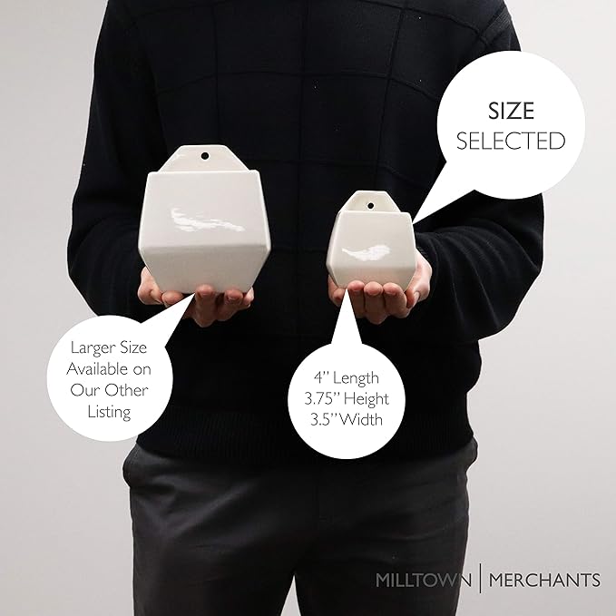 • MODERN COMPACT DESIGN - The versatile design of the Milltown Merchants Ceramic Wall Planters allows for them to be wall mounted or stand upright on a shelf or desk. The removable drainage plug accommodates both real and artificial plants. It also makes a great holder for pens, pencils, and other accents in a home office.