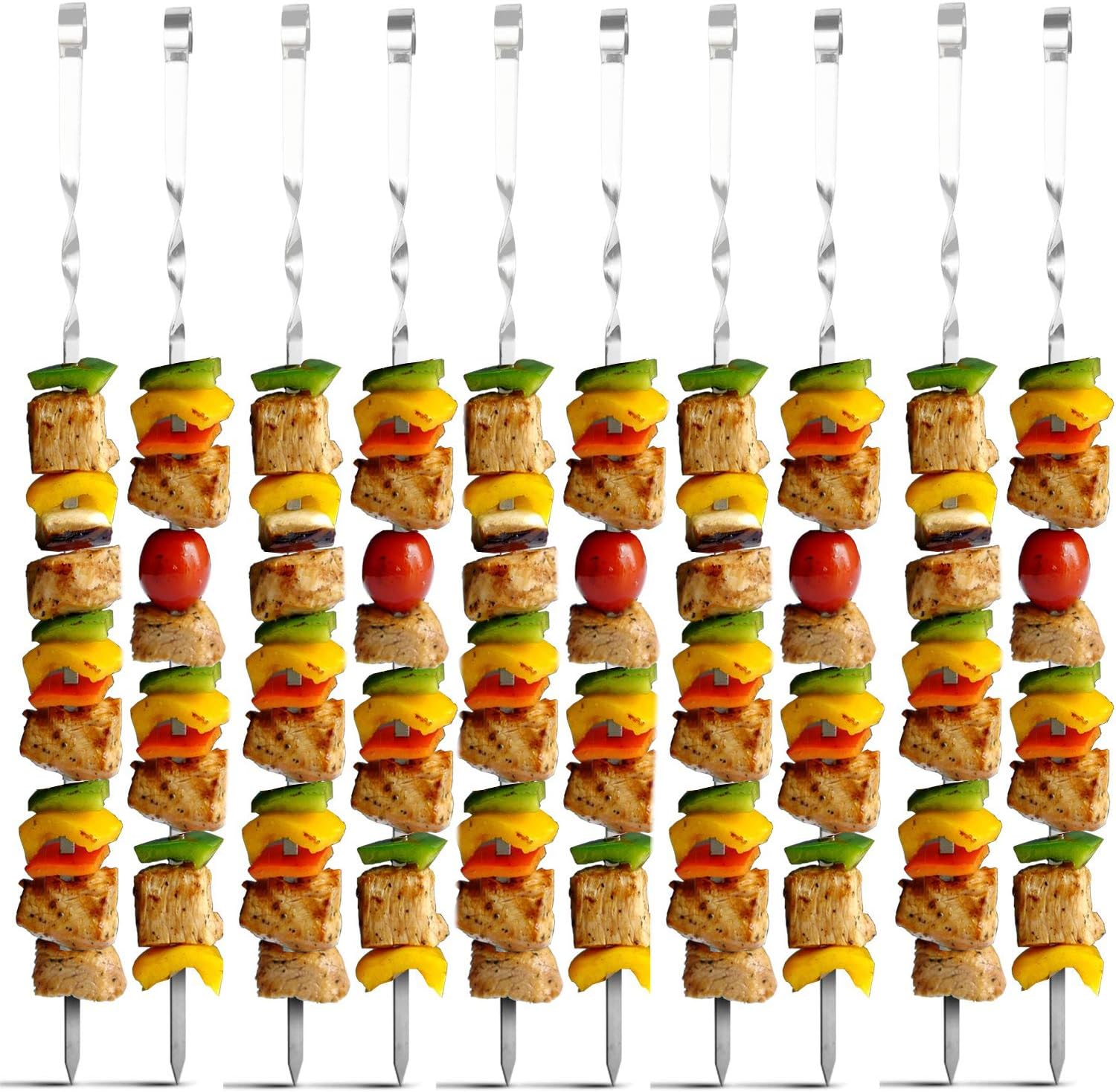 • EXTRA LONG PERFECT SIZE Crafted with PREMIUM AISI 430 stailess steel, our large BBQ kabab skewers are durable, oven and grill safe and the blades are rust resistant for long term use