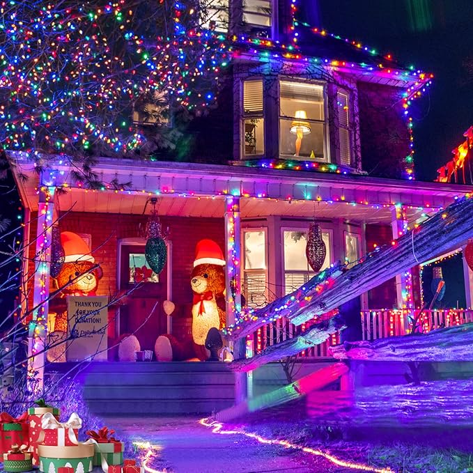 • 2 Pack Solar Christmas Lights: Still struggling to find power for your outdoor decorations? Our string lights are solar powered and can be used outdoors without being restricted to an outlet. When fully charged, the solar panel can work for 8-12 hours. While supporting environmental protection, it can save you electricity bills. The high-efficiency solar panel and 200 high-quality lamp beads will work together to emit a stable and bright light that will accompany you all night
