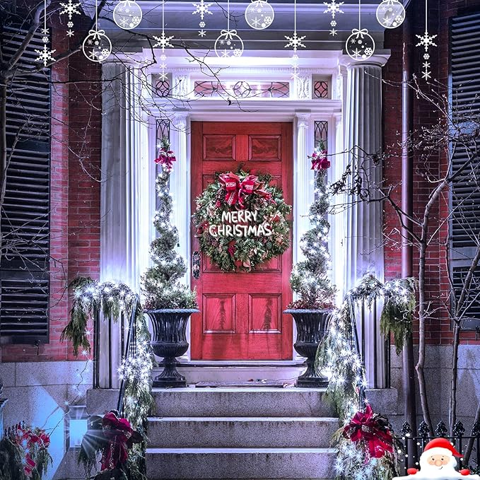 • White Christmas Lights: Still struggling to find power for your outdoor decorations? Our Christmas lights are solar powered and can be used outdoors without being restricted to an outlet. When fully charged, the solar panel can work for 8-12 hours. While supporting environmental protection, it can save you electricity bills. The high-efficiency solar panel and 200 high-quality lamp beads will work together to emit a stable and bright light that will accompany you all night