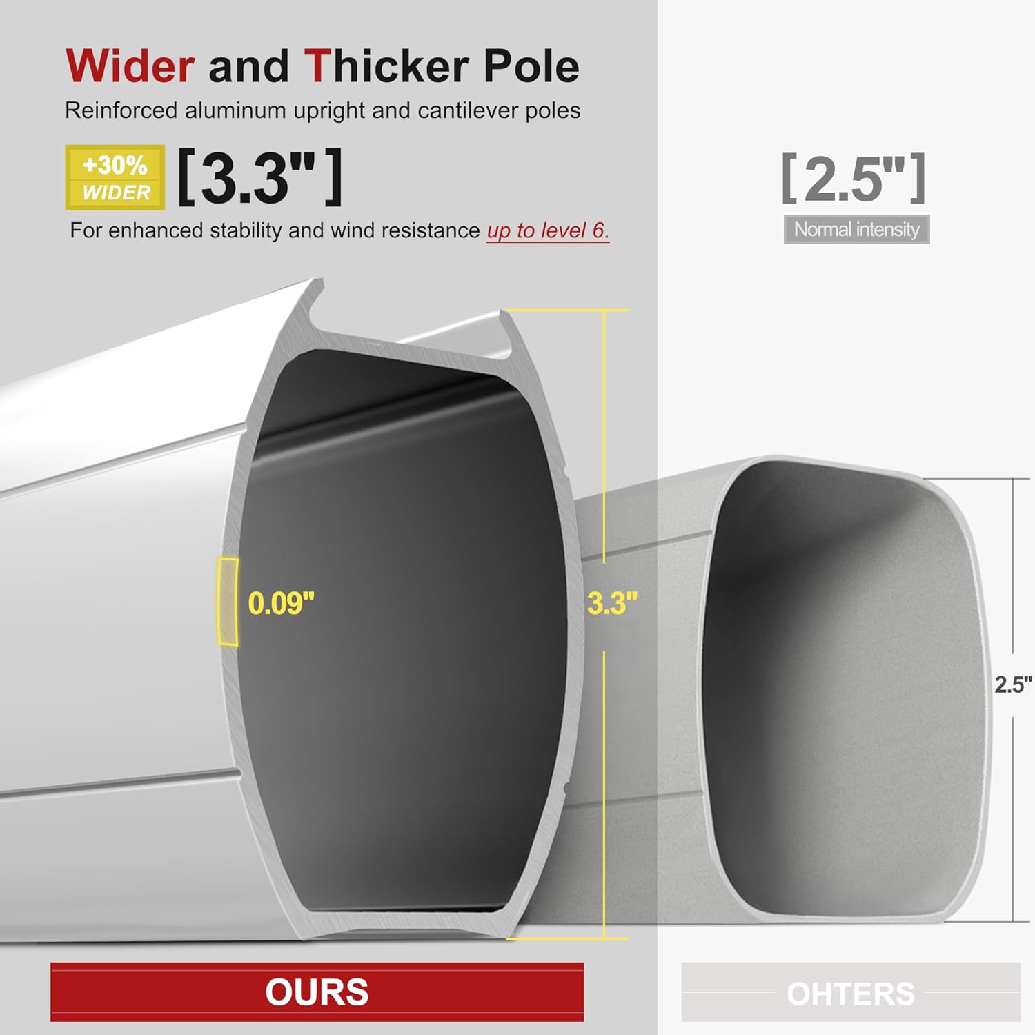 • Structural stability: 8 all-aluminum poles and a wider outdoor umbrella tray, anti-oxidation spray painted, extension of time of use