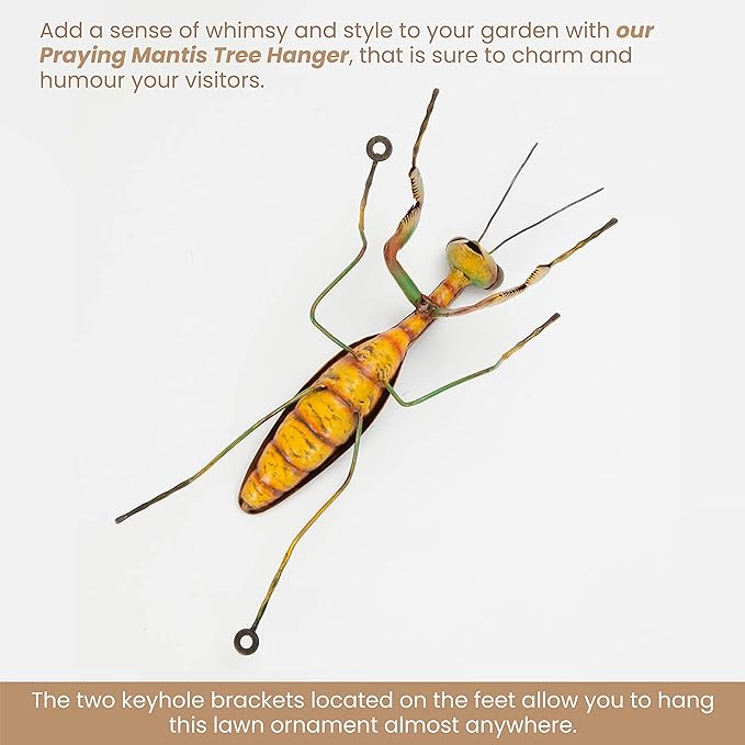 • Yard Decorations: A charming way to add a sense of whimsy and style to your garden, our Praying Mantis Tree Hanger will charm and humor your visitors. This piece is a perfect outdoor tree decoration