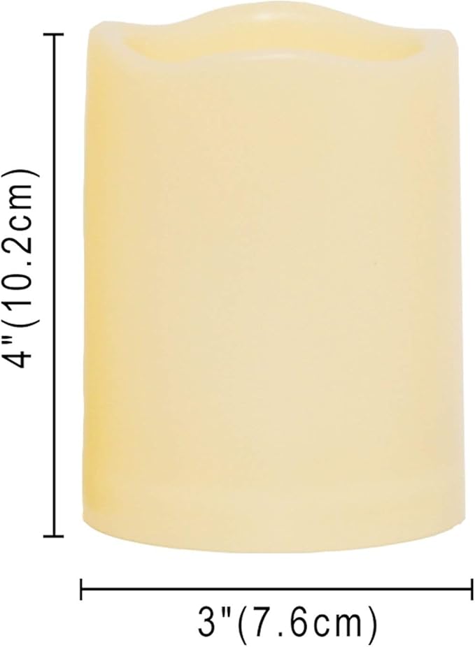 • Easy to use with timer. There are 4 built-in daily cycle timers inside each battery LED candle—2-hour, 4-hour, 6-hour and 8-hour. Use the remote control to set your desired timer. For example, press 6H to set 6-hour timer. The LED flameless candle stays on for 6 hours and turns off automatically for the next 18 hour. This 6-hour on, 18-hour off cycle repeats every day. The daily cycle timer saves the troubles of turning on and off these flameless LED candles manually.