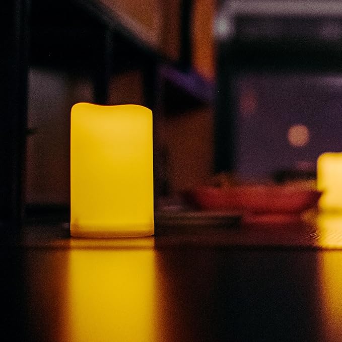 • Look and flicker like real candles, and safe to use with. With flickering LED bulbs and realistic appearance, the plastic resin battery candles look like and flicker like real candles. Battery operated LED flameless pillar candles are safe to use with, especially when you have children, seniors and pets at home. There is no fire hazard, no fume and no wax mess.