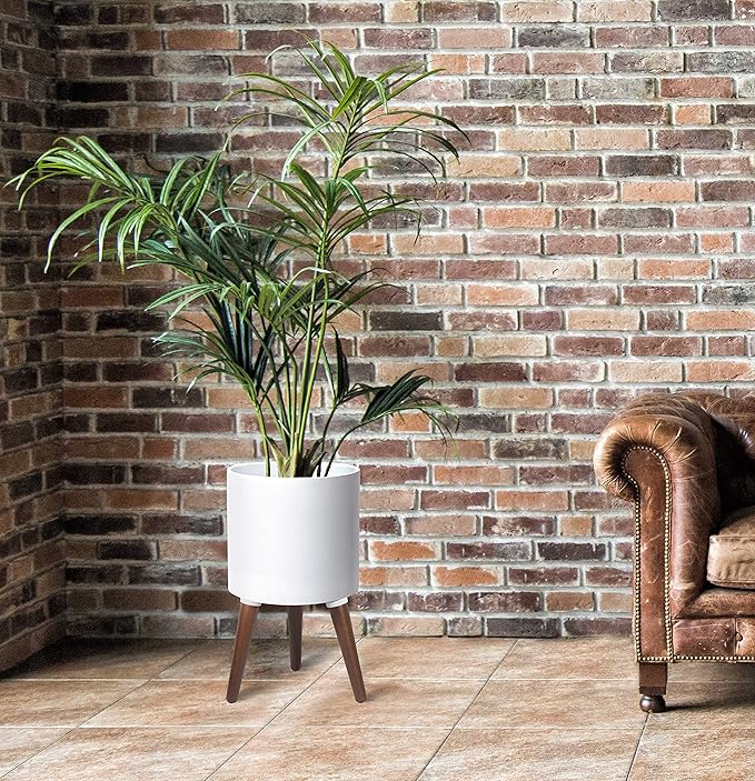 D'vine Dev 10 Inch Planter Pot with Stand, Mid-Century Tall Plant Pot with Legs for Indoor Plants, Medium, White, 88-O-B-1