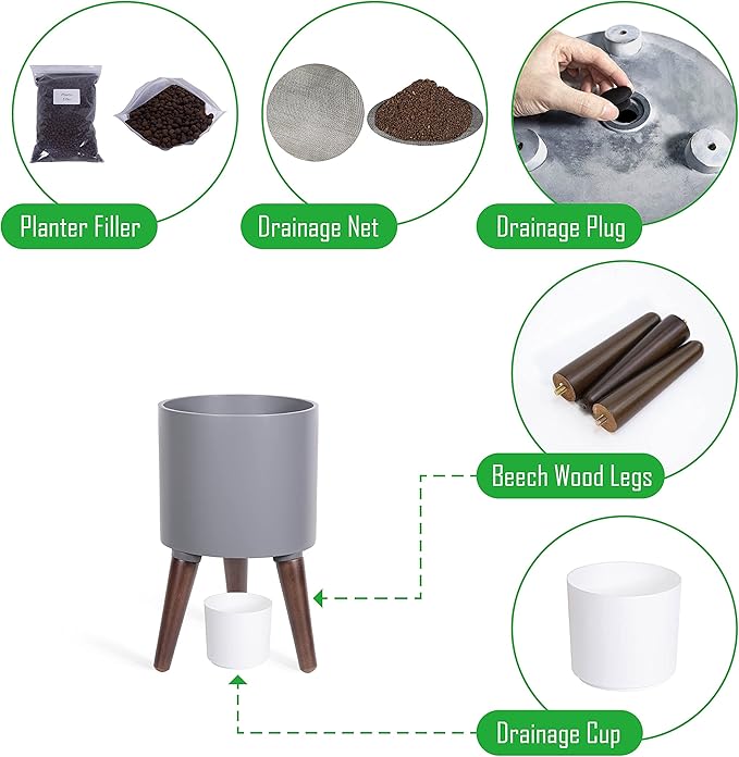 • Plants enthusiast accessories - drainage mesh net, optional plug, water catch cup, small bag of ceramic plant fillers.