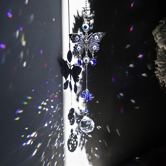 • Blue Evil Eye and Butterfly Hanging Crystal Ornament for Home Decoration to Bring Luck and Happiness