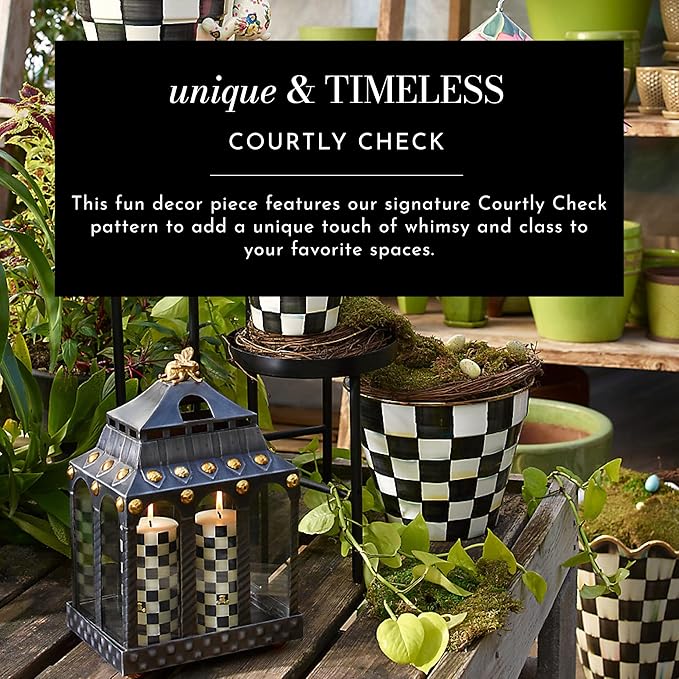• ELEGANT OUTDOOR DECOR: Our planter pot decor is “hoppy” to add a touch of whimsy to your space. It is hand-painted in our signature black-and-white Courtly Check pattern and finished with a gilded gold crown.