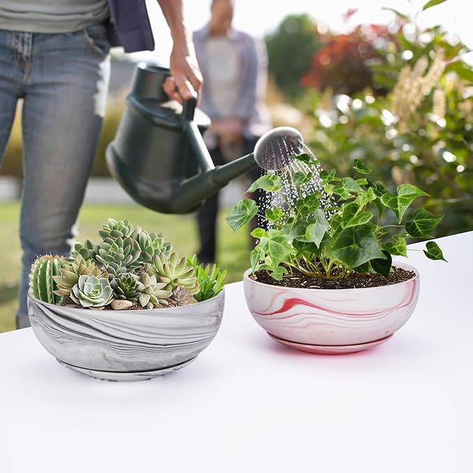 • Carefully designed size: 8in diameter x 3in height pot, 6in marble tray - provides enough space for plants