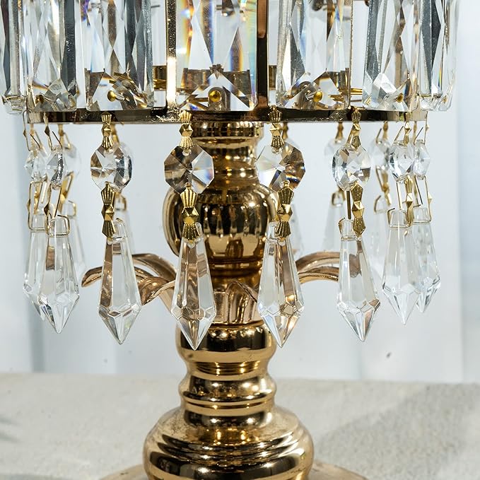 HDCRYSTALGIFTS 20Pcs 38mm Replacement Clear Chandelier Icicle Crystal Prisms Octogan Crystal Bead for Lamp Decor,Gold Bow Tie Connectors