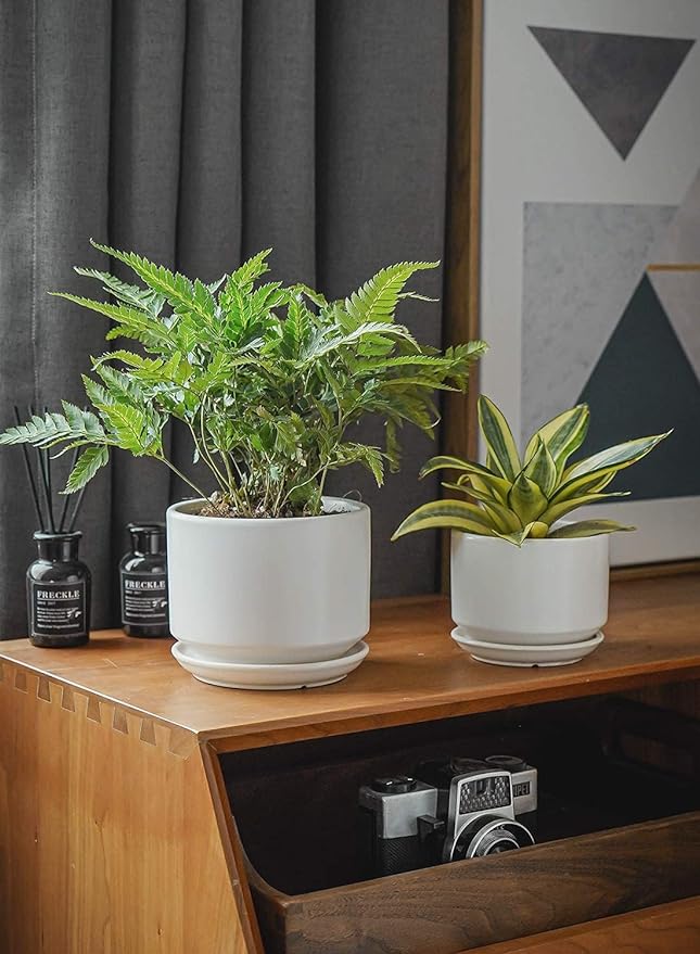 • Contemporary Style: These elegant and modern pots fit into any decor; Great for decorating windowsill, tabletop, shelf, bedroom, kitchen, garden, and outdoor patio; Classic ceramic planters for indoor plants with good becoming tray, easy and elegant wax modern design with different color endings