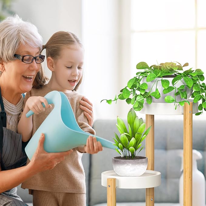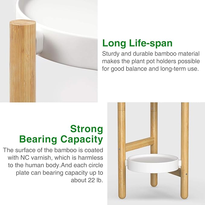 • 🌷【Made of 100% solid bamboo】Especially durable and sturdy. The 3 round plant pots are made of carbon steel, which is more advanced and sturdy than plastic ones, making each circle plate more anti-rust, easy to clean, better bearing.