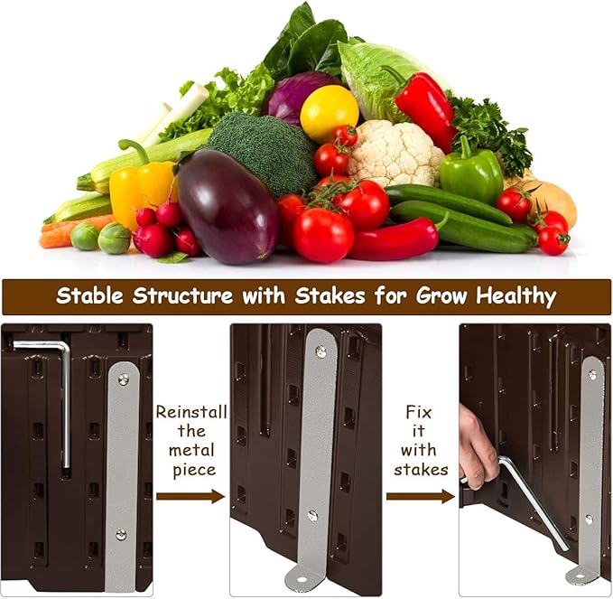 • 【Stable Frame with Ground Nails】: For keep the garden bed stable, there are four ground stakes included. With this ground nails, you can firmly fix the planting box to the ground, so that without worrying about being blown away by the wind. Besides, four corner brackets are prepared for keep the panels in place.
