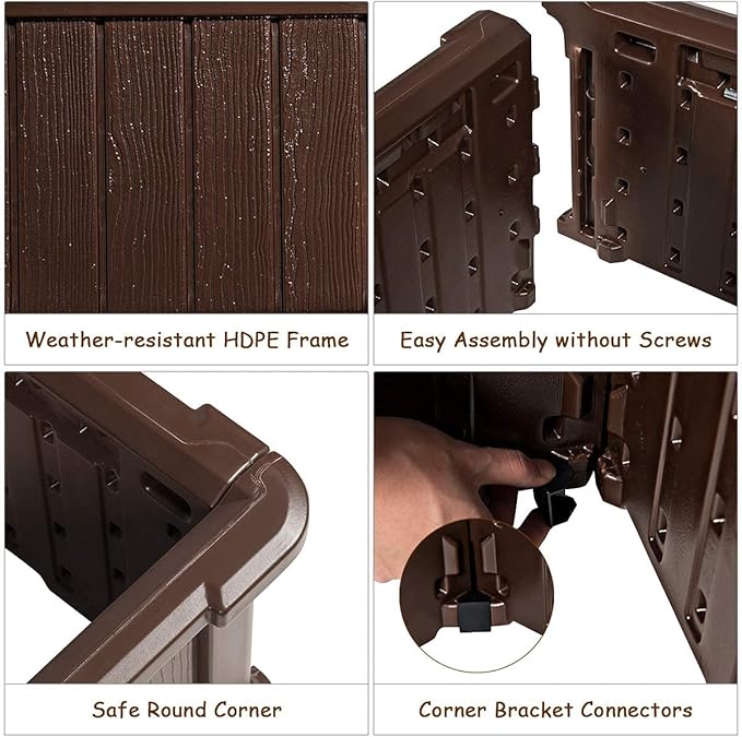 • 【Weather-Resistant Materials】: The garden box is made of HDPE, which is sturdy and durable for long time worry-free using. Most importantly, thanks to unique features of HDPE, this garden box is weather-resistant without worrying about rust. The panel of the garden box is integrally formed by a blow molding process.