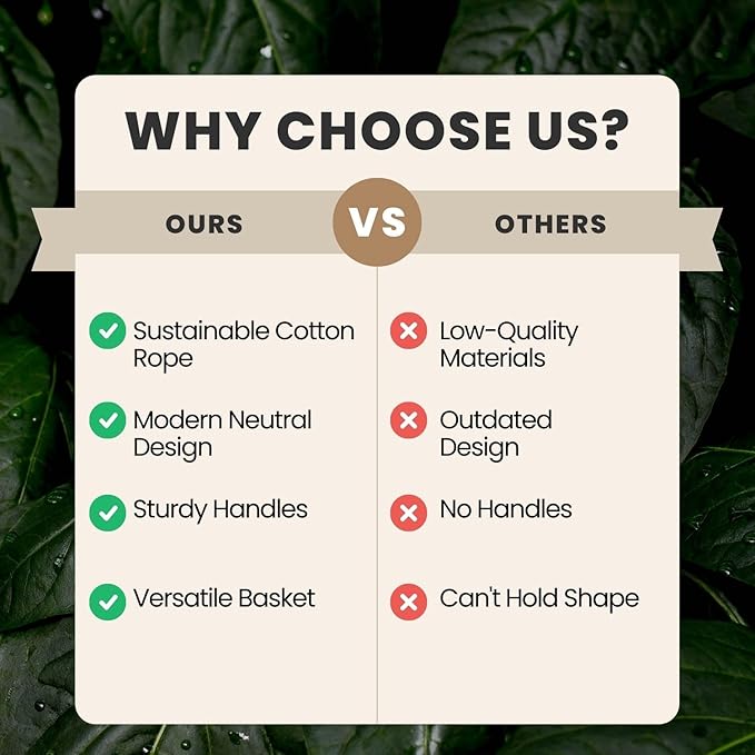 • Household Multi-use Basket Bin: Not only use as a basic hanging planter cover but also for various purposes; Great for storage bins for laundry clothes, blankets, baby toys, diapers, home supplies holders. Widely used in the living room, bedroom, restroom, nursery, or laundry room, even as a stylish trash bin