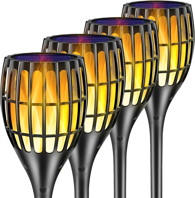• 🔥 EASY INSTALLATION & IP65 WEATHERPROOF - Just place the solar flame lights into your lawn, garden, a flower pot, bench, pathways. IP65 waterproof dancing flame solar torch light was built to withstand all kinds of weather all round year.