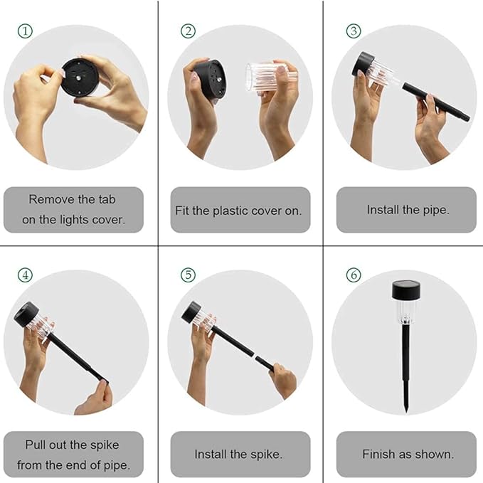 • ★ Easy for Installation: NO WIRES. These solar garden lights can be done in a few minutes. Just connect the parts and stake into the ground where there is direct sunlight. For your convenience, we provide the rechargeable batteries.