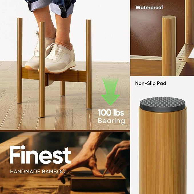 • 【Strong and Durable】100% handmade bamboo and wood plant stand; sturdy and durable; easy to support large size heavy flower pots