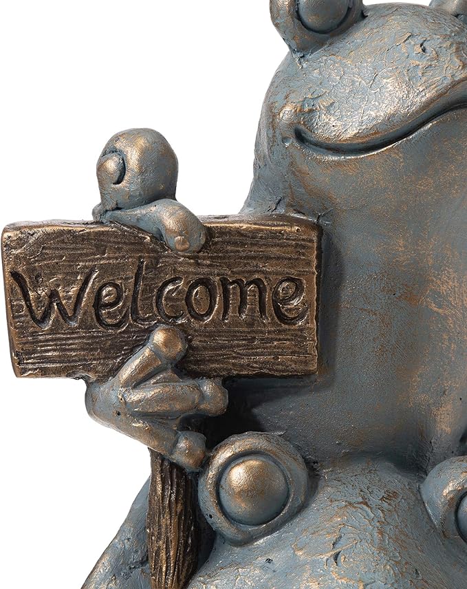 • EYE-CATCHING DETAILS: Handmade antique bronze finish gives a sense of vintage and superior touch. Designed as the stacked frogs holding a "welcome" sign looks vivid and interesting.