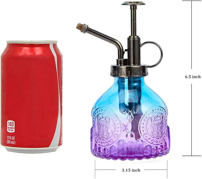 Glass Plant Mister Spray Bottle, Vintage Plant Spritzer, Succulent Watering Bottle with Top Pump, Small Plant Sprayer Mister Watering Can for Indoor Outdoor House Plant - Blue Purple Gradient
