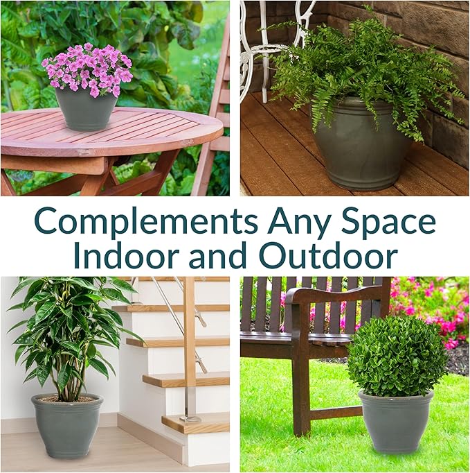 • VERSATILE PLACEMENT: Use this round garden planter on the patio, deck, or porch to add flowers to outdoor spaces, or set the planter in the sunroom, living room, or dining room to bring life to indoor spaces. If using it indoors, place a saucer (not included) beneath the flowerpot to prevent water and soil from leaking on the floor. The drainage in the bottom of the pot provides optimal air circulation and prevent water from pooling.
