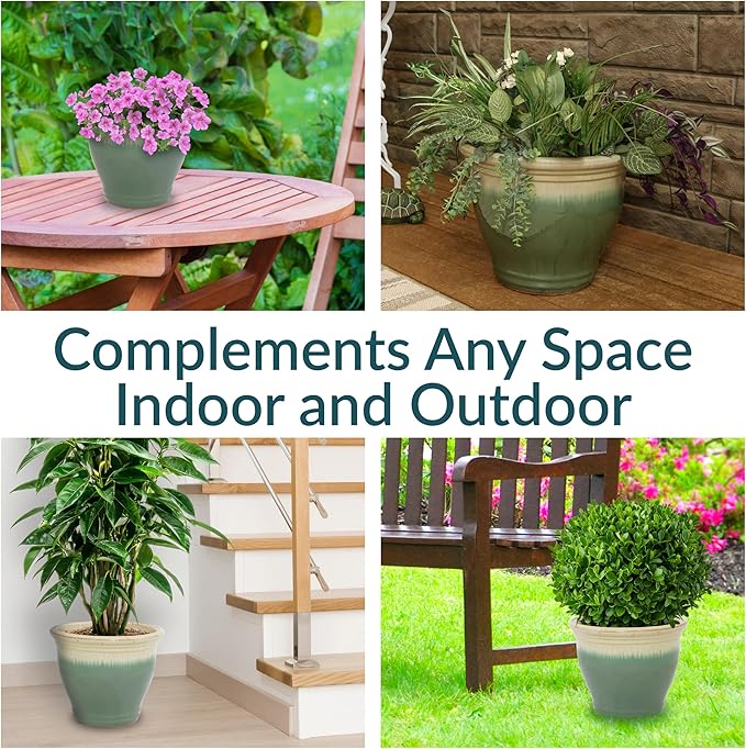 • VERSATILE PLACEMENT: Use this round garden planter on the patio, deck, or porch to add flowers to outdoor spaces, or set the planter in the sunroom, living room, or dining room to bring life to indoor spaces. If using it indoors, place a saucer (not included) beneath the flowerpot to prevent water and soil from leaking on the floor. The drainage in the bottom of the pot provides optimal air circulation and prevent water from pooling.