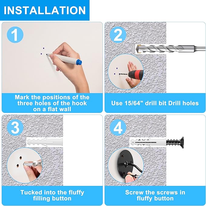 • LOADING WEIGHT --- The hooks can holds up around 50 pounds weight, Ensures stability and strength, suitable for interior and exterior use.