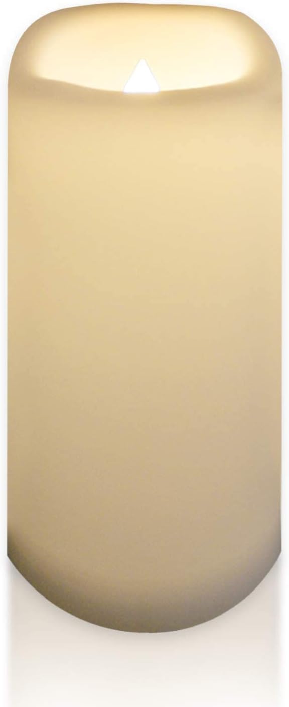 • Truly waterproof and large sized outdoor candle. This plastic battery candle is waterproof and designed for outdoor use to decorate your garden, yard, patio, swimming pool, or an outdoor activity such as a BBQ party. The resin candle can be used indoor to decorate your fireplace and rooms. The LED candle is measured 4” in diameter, 10” in height, suitable for large hurricane lantern and whenever big outdoor candles are needed. Unlike wax candle, plastic candles never melt when used outside.