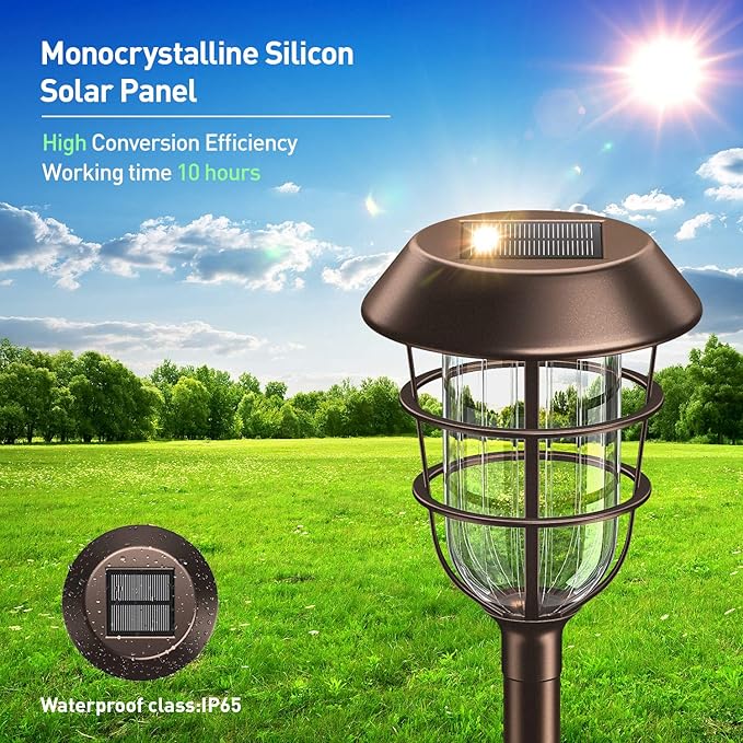 • ☼ WEATHER-RESISTANT & WATERPROOF. Solar path lights are waterproof IP65. Don’t need to worry about them in bad weather like rain, snow, frost or sleet.