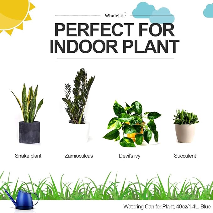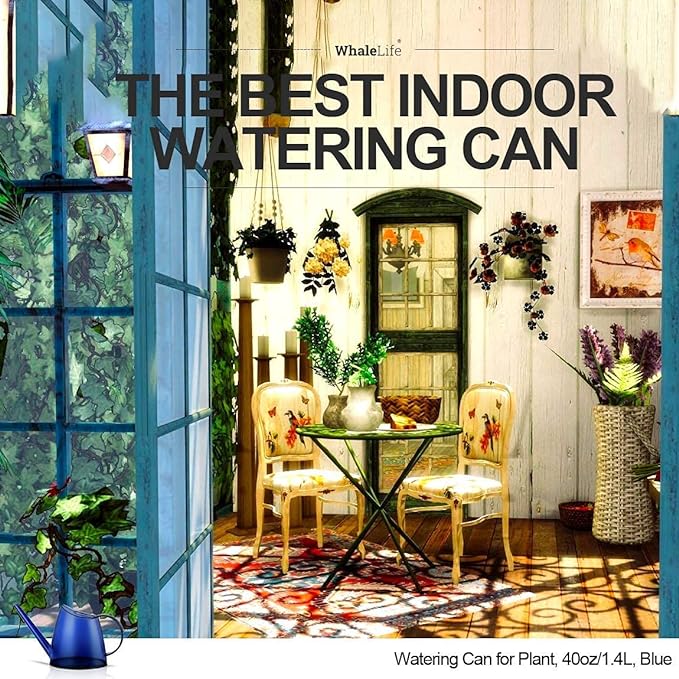 WhaleLife Indoor Watering Can for House Bonsai Plants (1.4L, Blue)