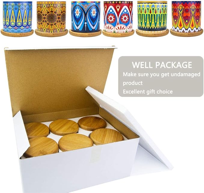 • 【Mandala Succulent Pots】- You will get 6 pack plant pots with bamboo coaster. Planter inside diameter 2.5inch (outside diameter 3inch), bamboo coaster diameter 3.6", thickness 0.4". Notice: Plant is not included.