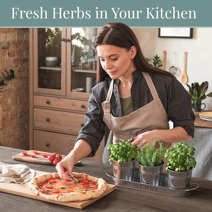 • Indoor Herb Garden Planter with Tray - Add greenery to your space with this vintage metal windowsill planter. Herb planters for indoor plants with a farmhouse touch. Place the indoor herb planter on your kitchen counter or display the small herb planter as an apartment window planter.